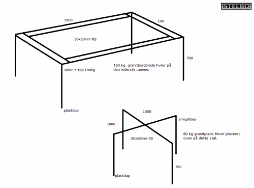 20160122 Specialfremstillet bordstel i 40x40mm stortstål, 2 stk. 110 x 80 x 54cm SPECIALTILBUD 4.375,00 DKK