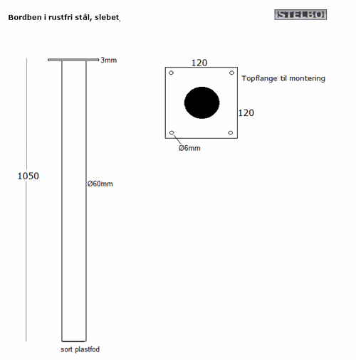 201602001 Specialfremstillet bordben, 1 stk. Længde 105cm, Ø60mm, Rustfrit stål SPECIALTILBUD 1.050,00 DKK