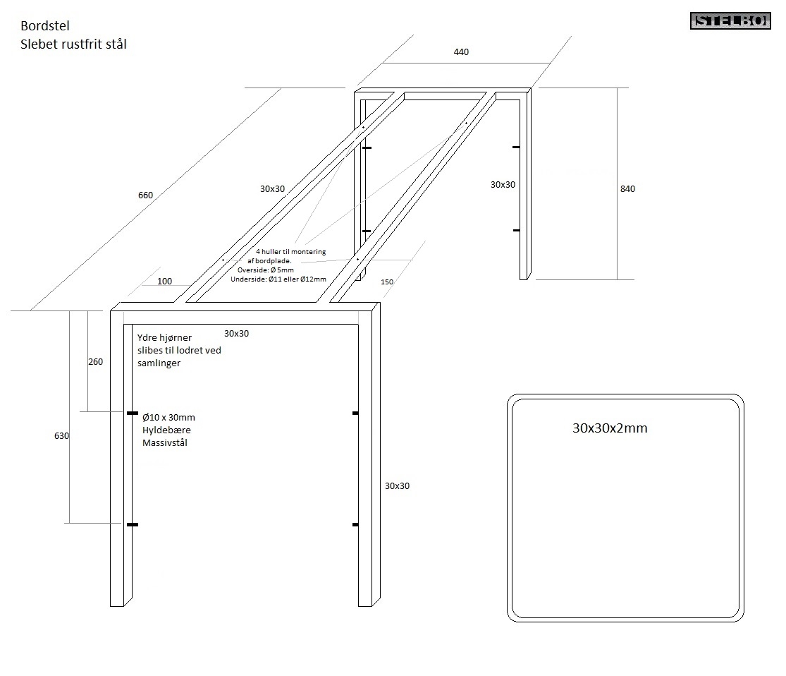 Specialfremstillet bordstel