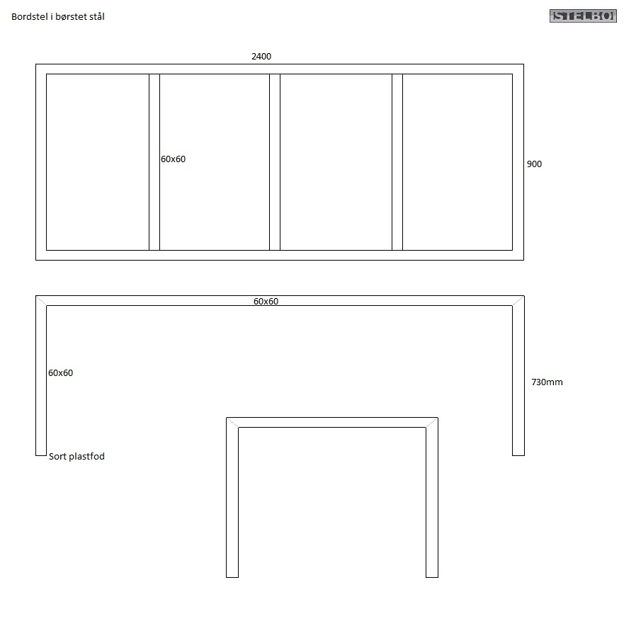 20161104 Specialfremstillet bordstel, 2400x900x730mm_Rustfrit. ex fragt