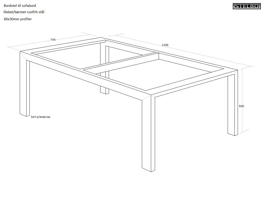 20161118 Specialfremstillet bordstel, Rustfrit stål, 1295x745x500mm. Ex fragt