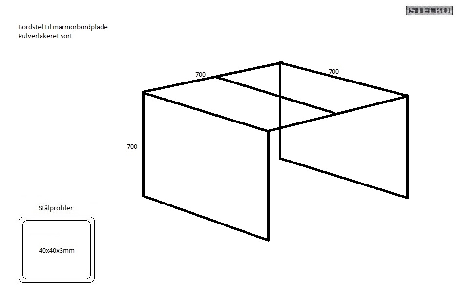 20170112 Specialfremstillet bordstel, Sortlakeret. 700x700x700mm