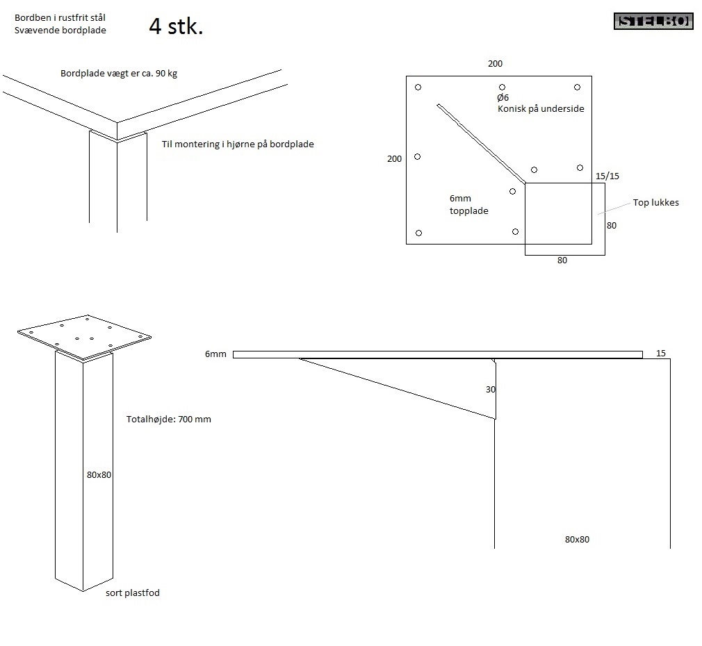 20170207 Specialfremstillet bordben, 4 stk., Rustfrit stål