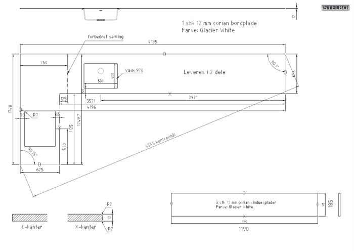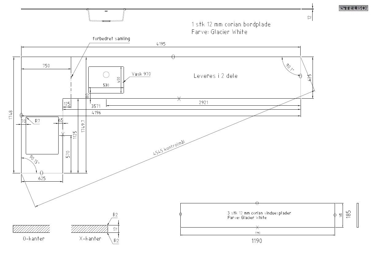 2 tuber Corian – Lim til montøren for samling af bordplader: 200,-