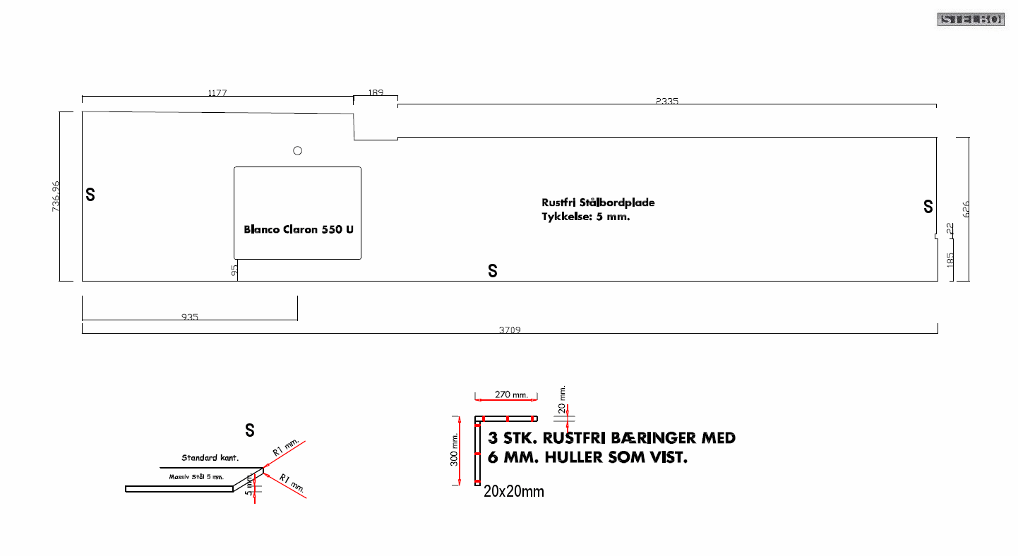 Vinkler monteres med skjult montage, så kun underside er synlig.