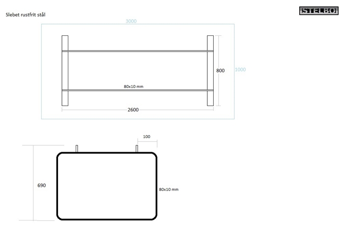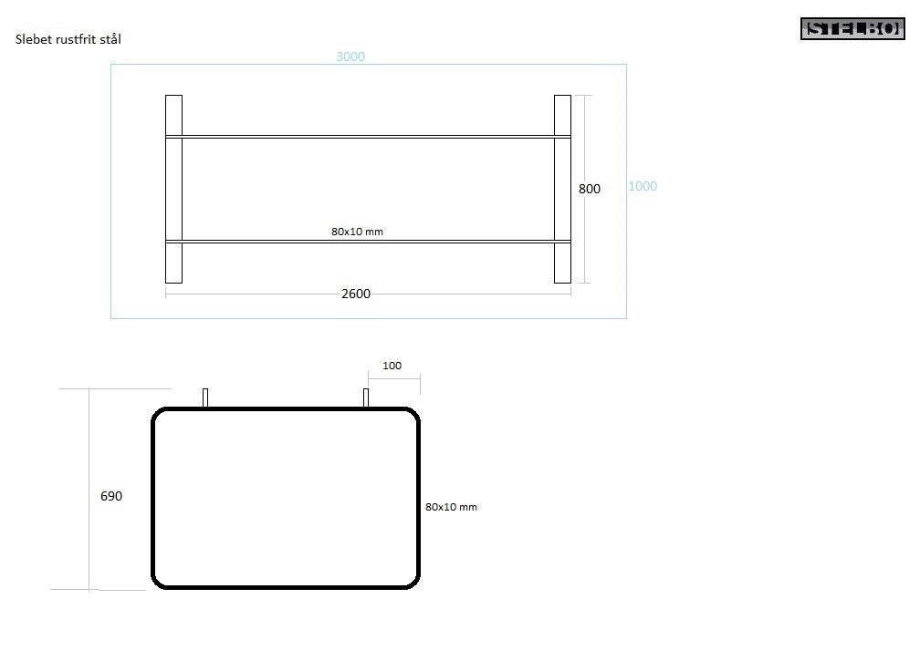 20170327 Specialfremstillet bordstel. Rustfrit stål. 80x10mm profiler