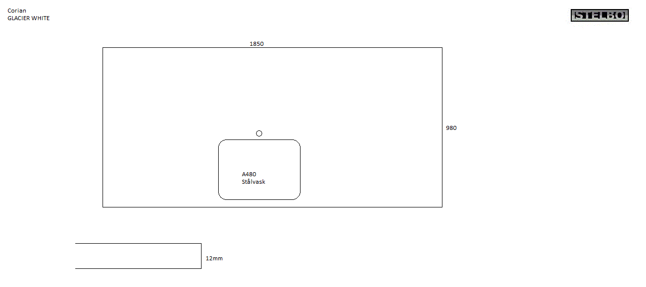 20170404 Specialfremstillet Køkkenbordplade i Corian. 185x95mm, Stålvask