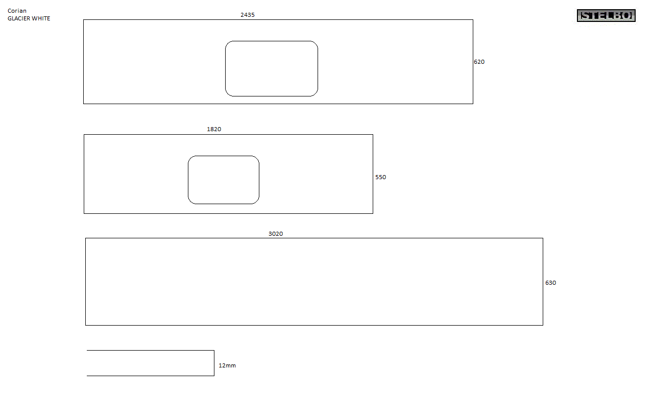 Mål: 1820x550x12mm (før: 1820x530x12mm)