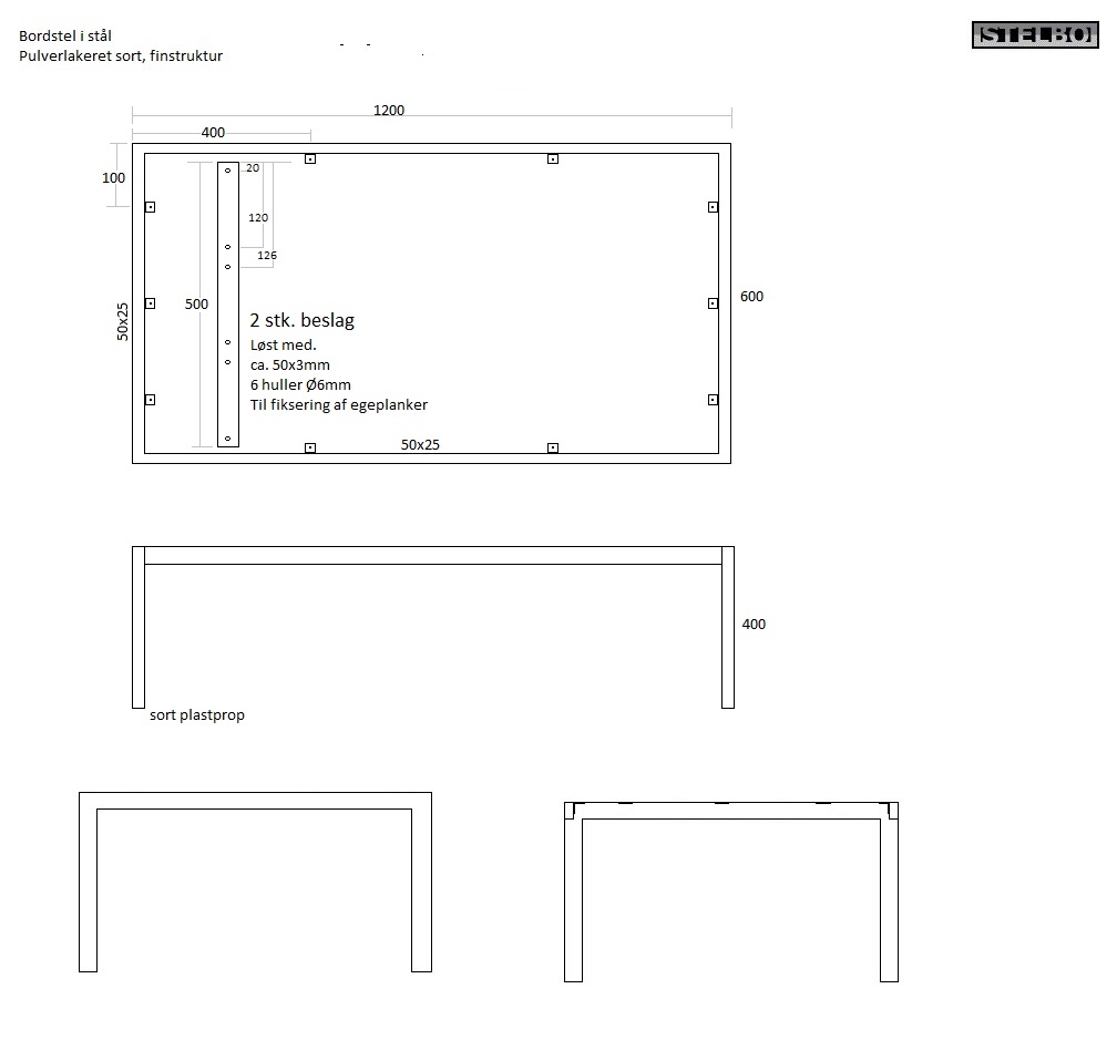 20170529 Specialfremstillet bordstel. Sortlakeret. 1200x600mm
