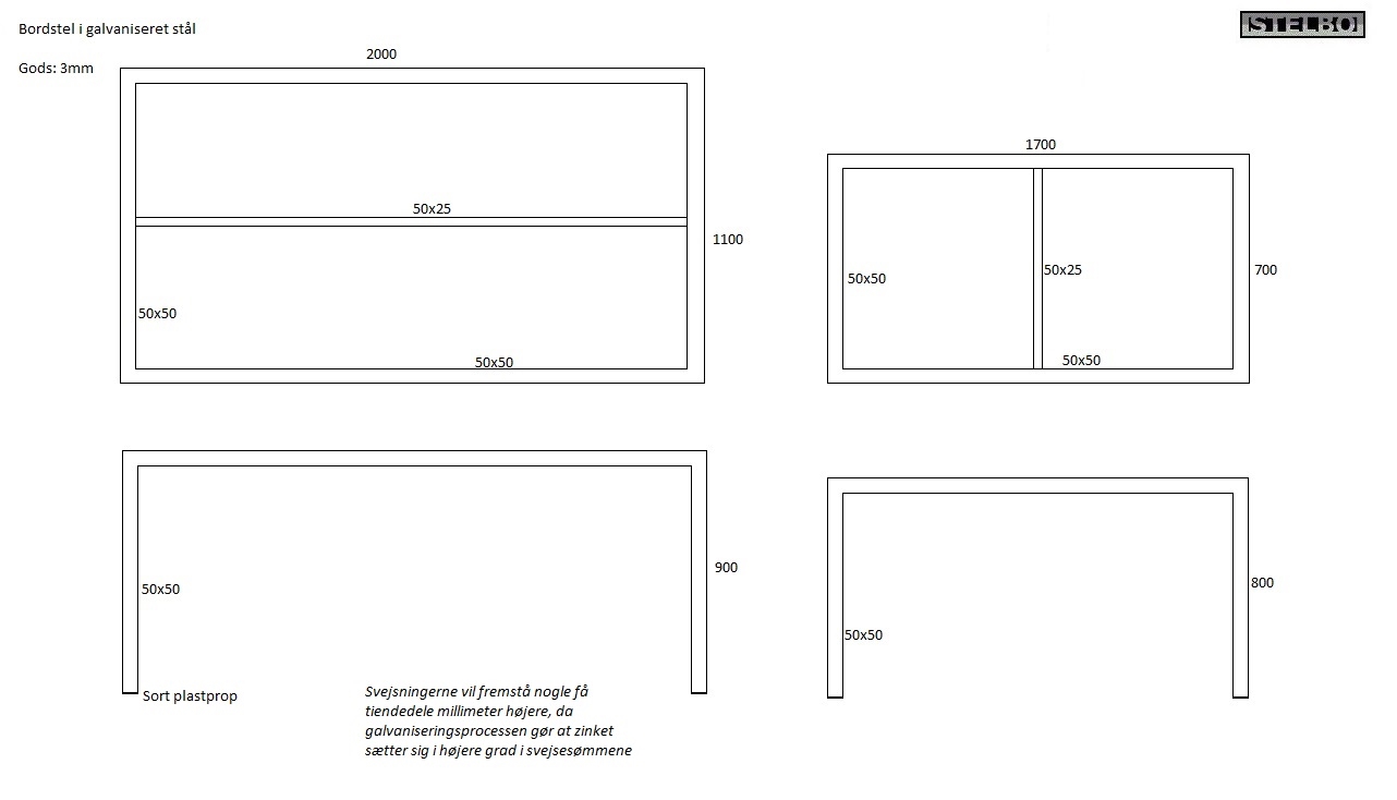 20170724 Specialfremstillet bordstel i galvaniseret stål, 2 stk.