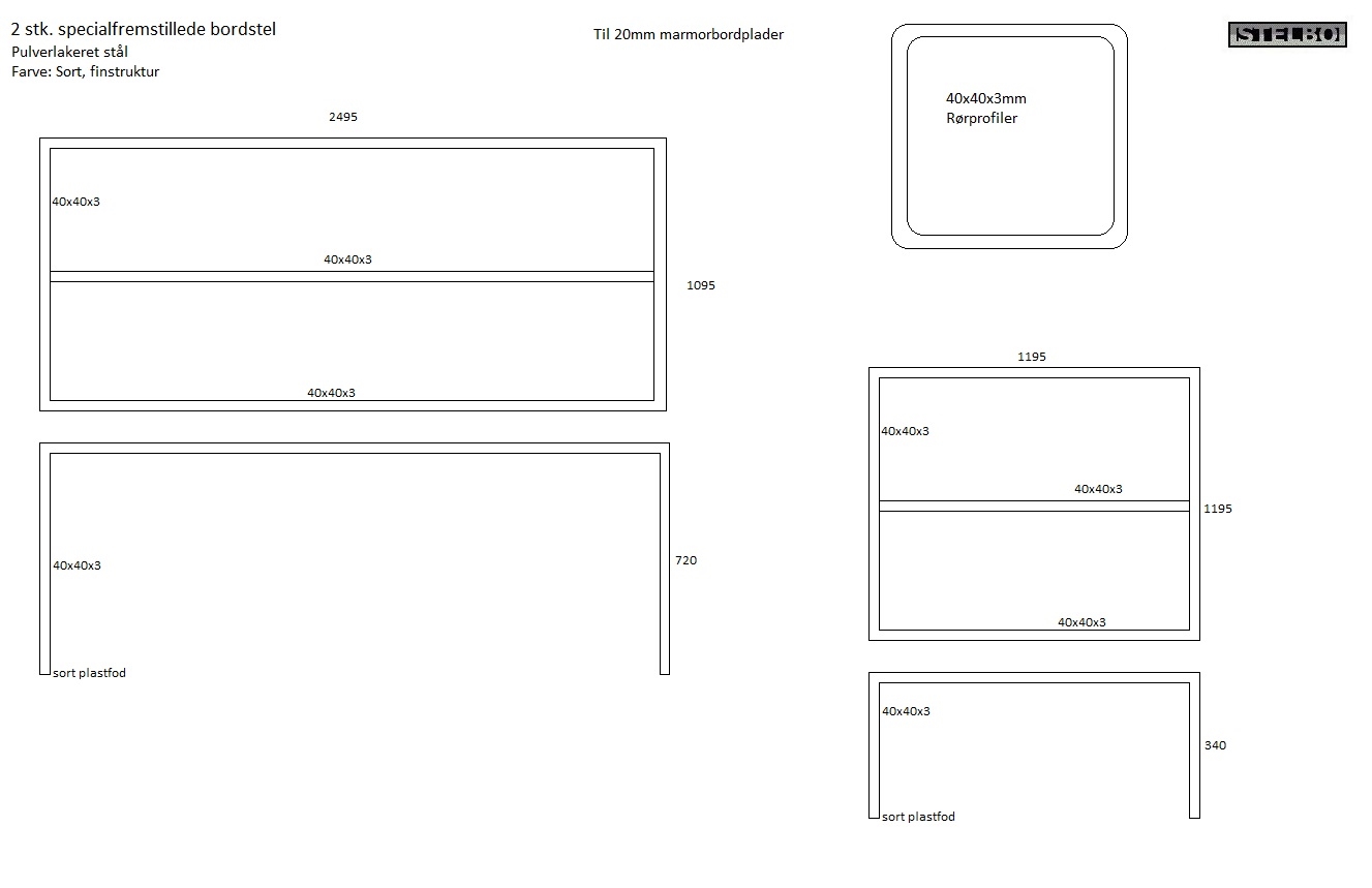 20170818 Specialfremstillet bordstel i pulverlakeret stål, 2 stk.