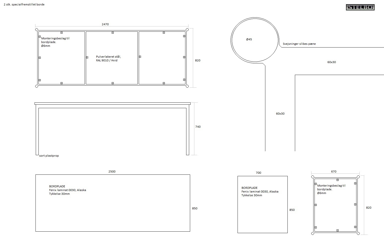 2 Bordstel i Pulverlakeret hvidt stål, RAL9010: 5000,-