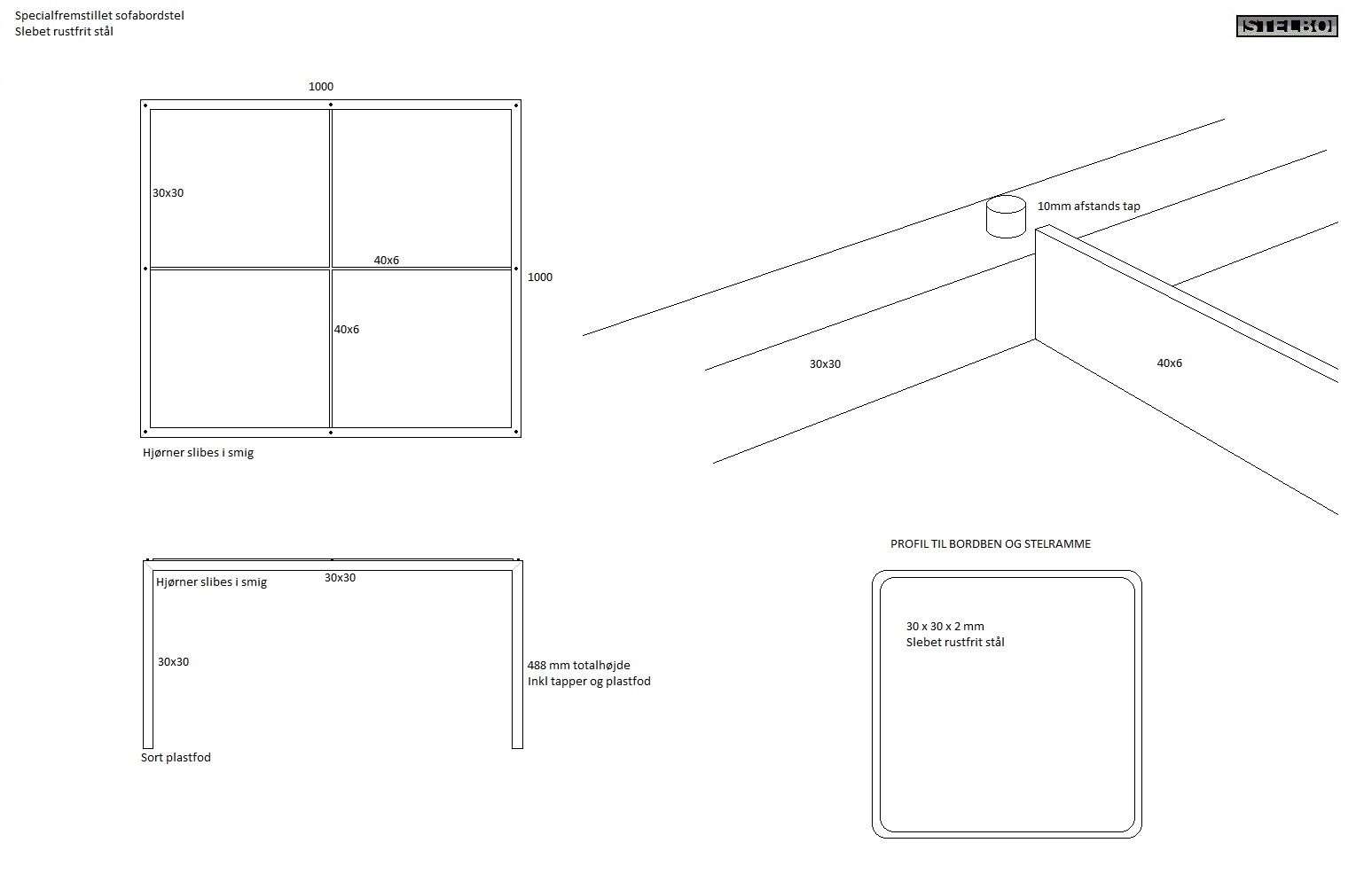 20170828 Specialfremstillet bordstel i rustfrit stål, 100 x 100 x 48.8 cm