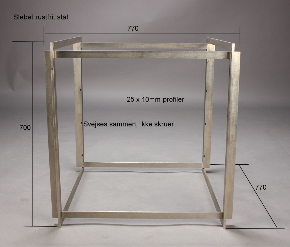 20170905 Specialfremstillet bordstel i rustfrit stål, 770x770x700mm