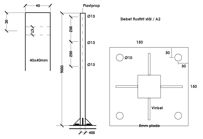 20170929 Specialfremstillet gelænderstænger, Slebet rustfrit stål, 10 stk., 900x40x40