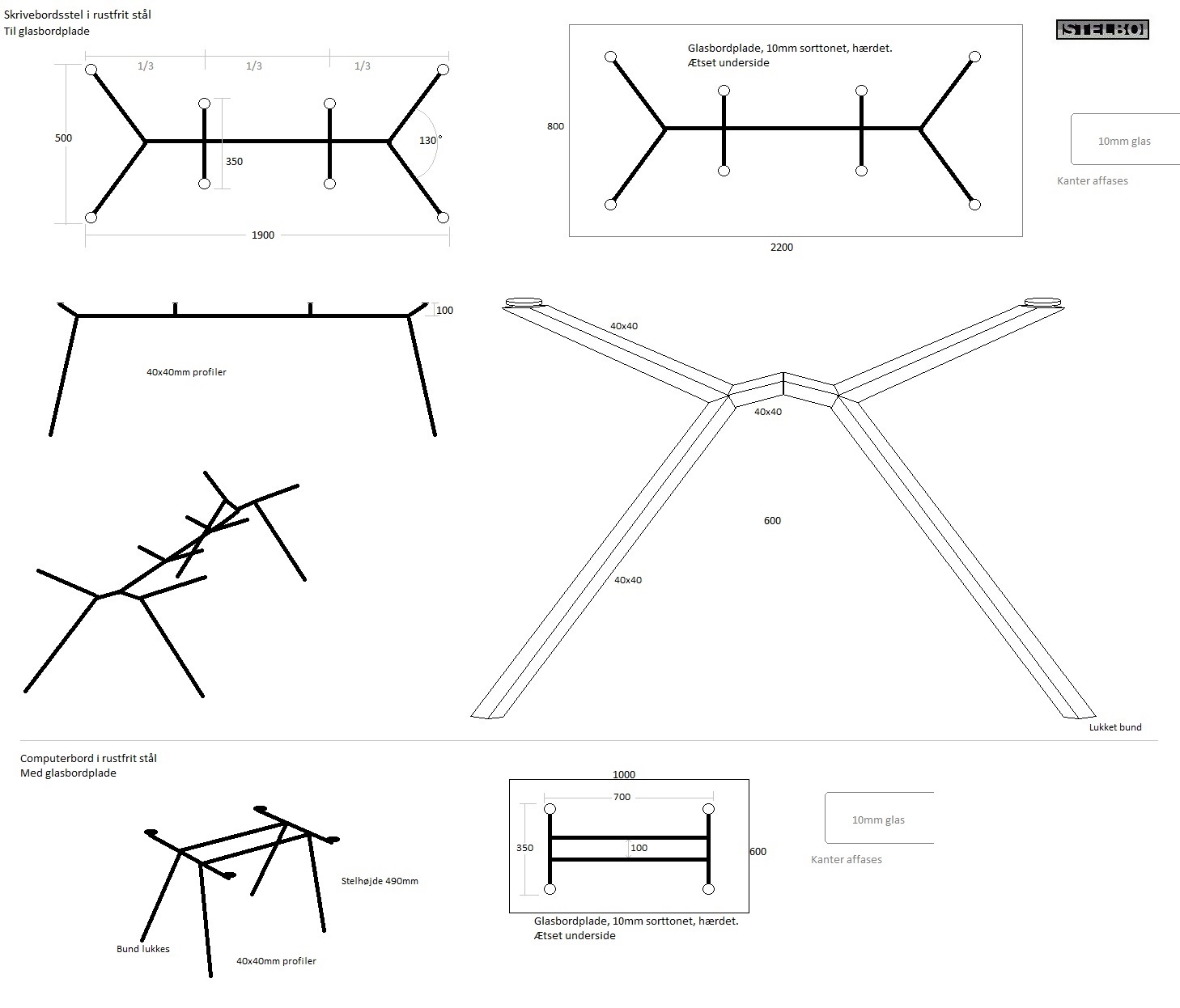 20171016 Specialfremstillet Skrivebord og Computerbord. Rustfrit stål og glasbordplader