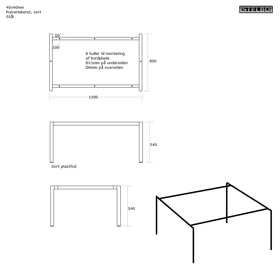 20171023 Specialfremstillet bordstel i 40x40mm stortstål, 2 stk. 110 x 80 x 54cm