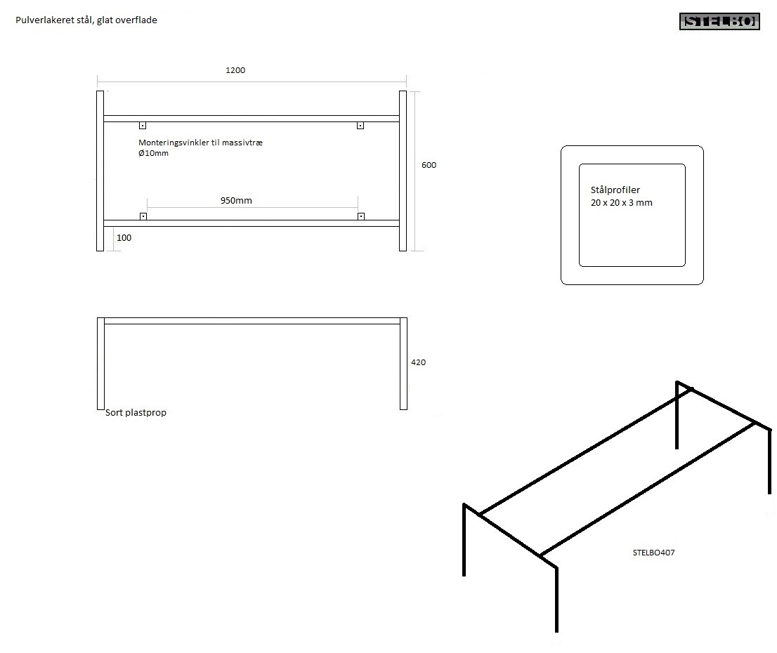 20171025 Specialfremstillet bordstel i pulverlakeret sortstål, STELBO407: 120x60cm