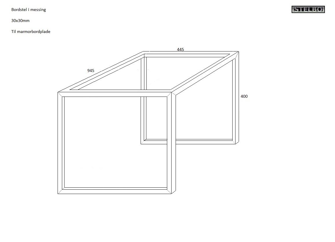 20180106 Specialfremstillet bordstel i 30x30mm messing, 945x445x400mm