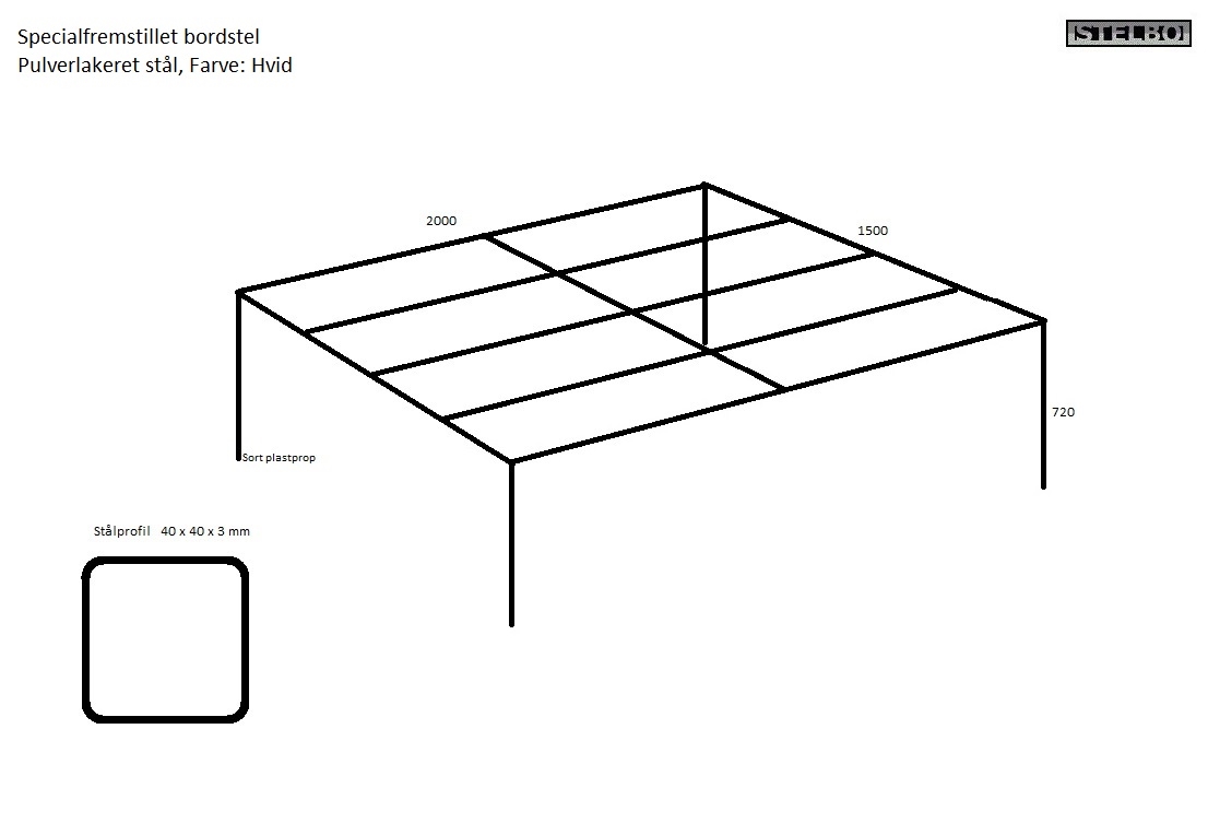 20180220 Specialfremstillet bordstel, 200x150x72, hvidlakeret 40x40x3mm