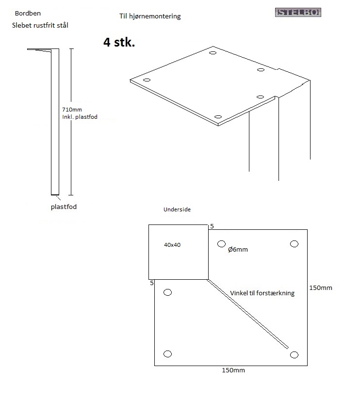 20180403 Specialfremstillet bordben, 4 stk., Rustfrit stål, 710-40x40mm