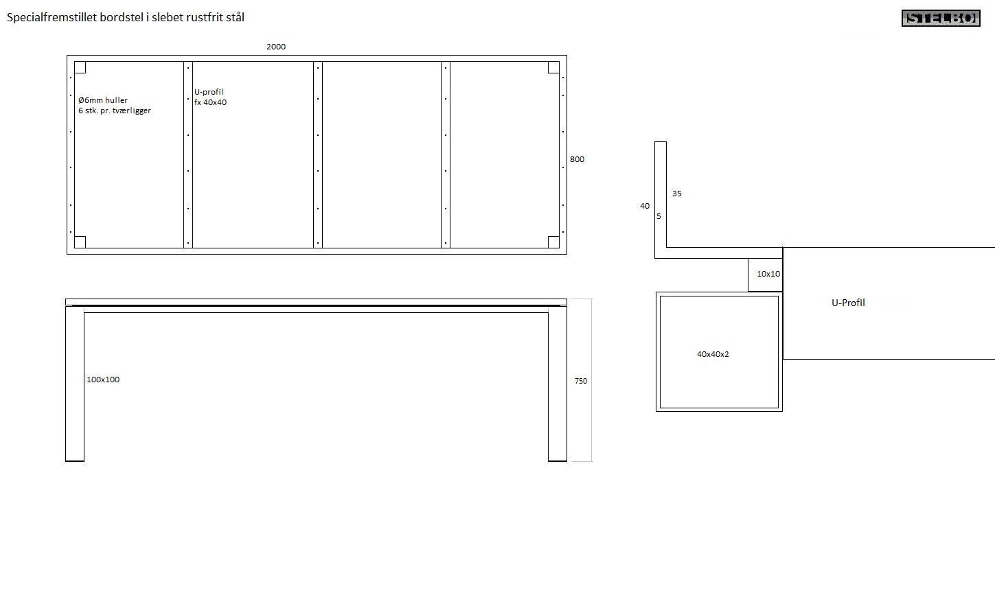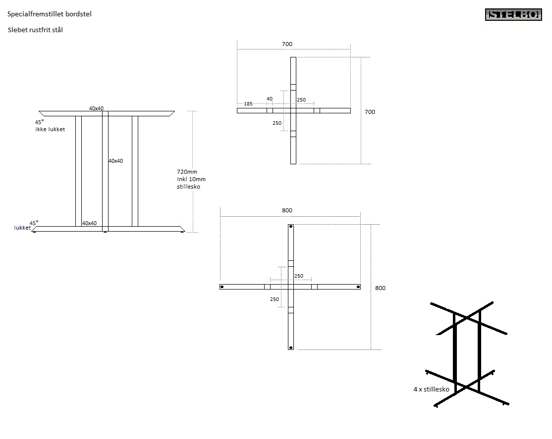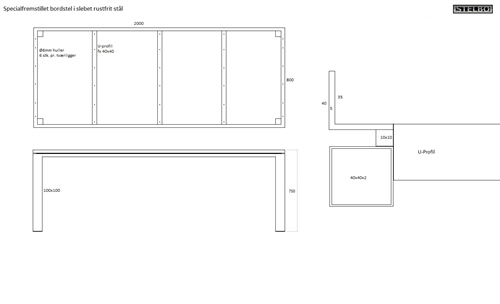 Specialfremstillet bordstel, Rustfrit stål