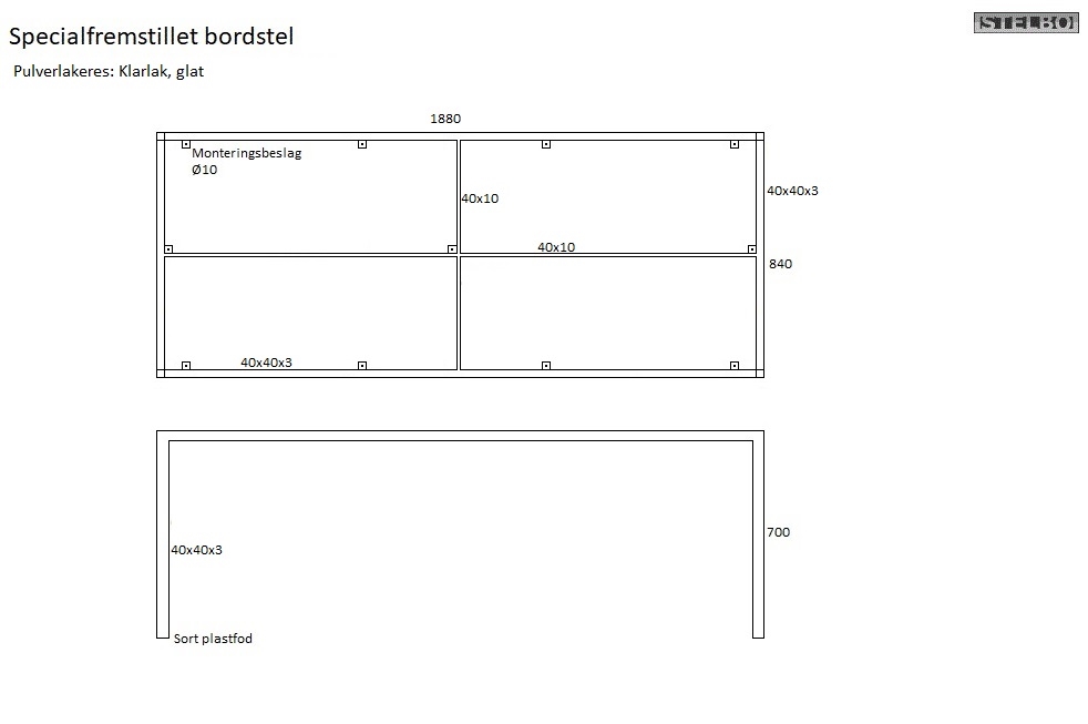 20180803 Specialfremstillet bordstel. 1880x840x700 med 40x40x3 rør. Klarlak