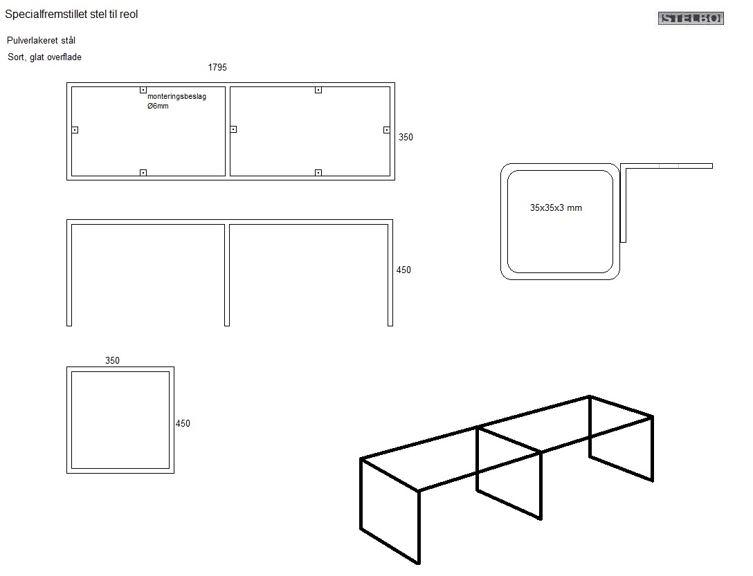 20181212 Specialfremstillet stel til reol. Sortlakeret stål.