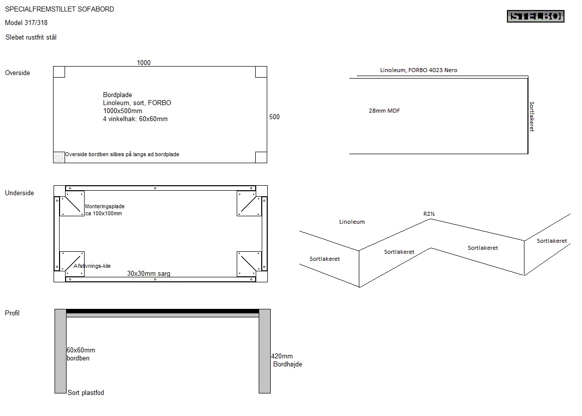 20190128 Specialfremstillet Linoleum-sofabord Model 317/318 - 1000x500x420mm