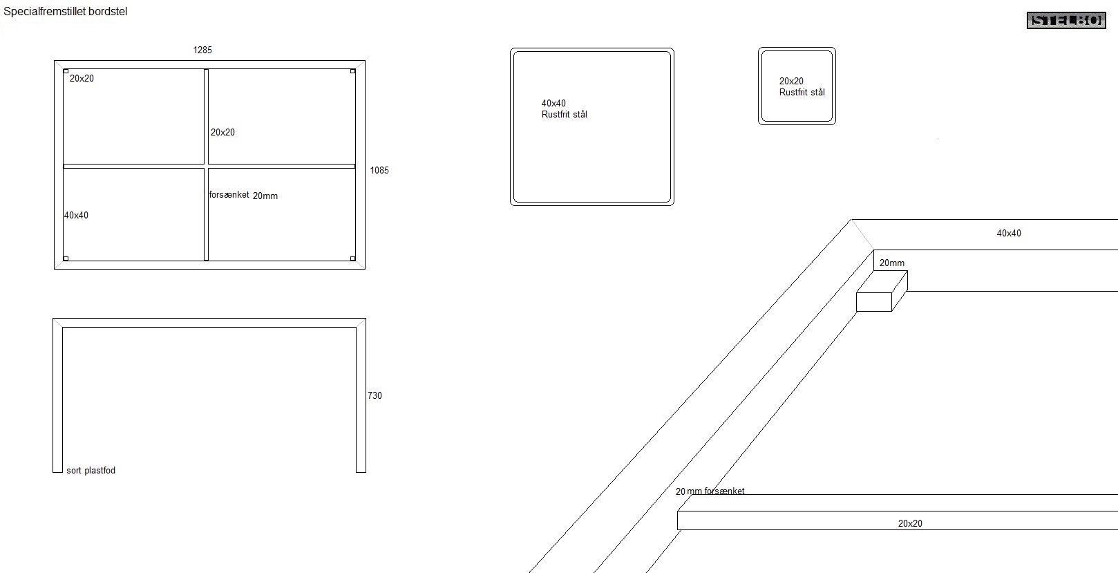 20190201 Specialfremstillet bordstel til glasbordplade på 120x100cm