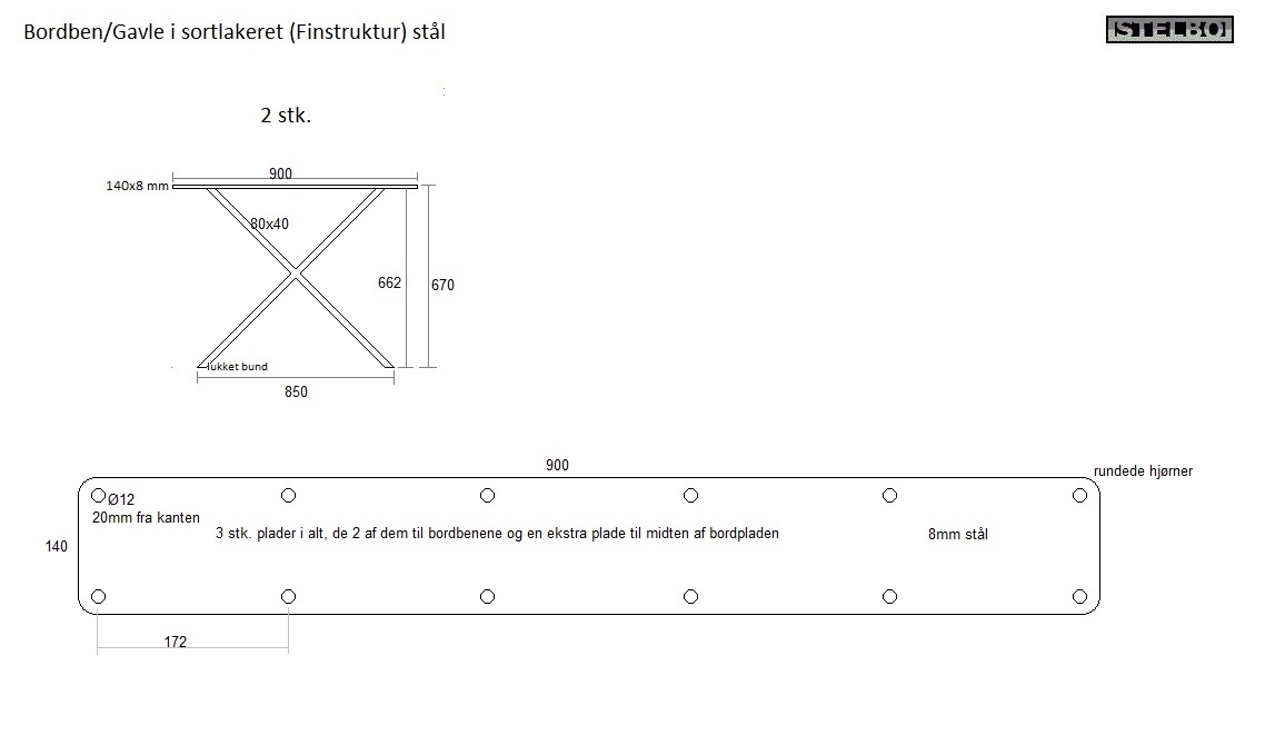 Forsendelse 250,- for de 2 bordben + 100,- for toppladen