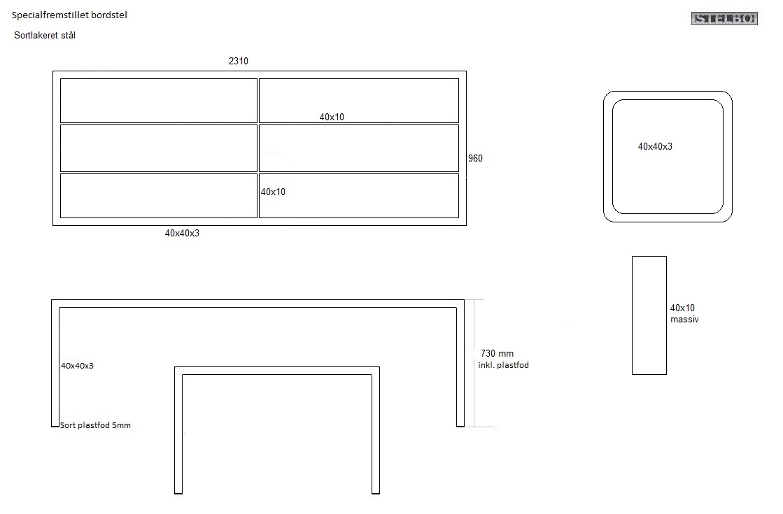 20190207 Specialfremstillet bordstel. Sortlakeret stål. 231x96x73cm