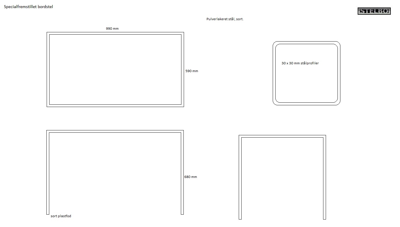 20191007 Bordstel i sortlakeret stål. 990 x 590 x 680. Ex fragt
