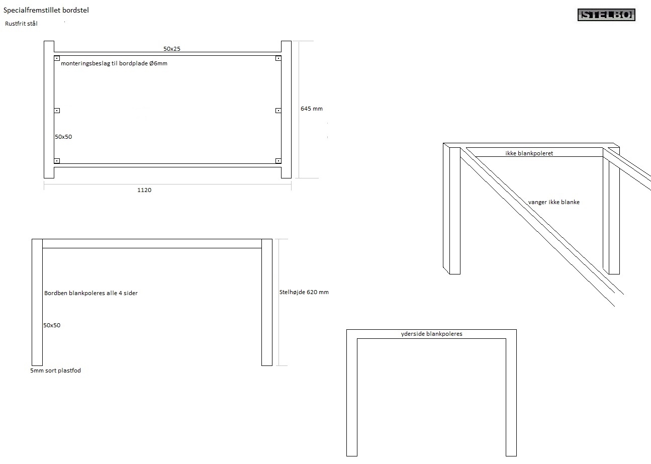 20191016 Specialfremstillet bordstel i rustfrit stål. 50x50 + 50x25