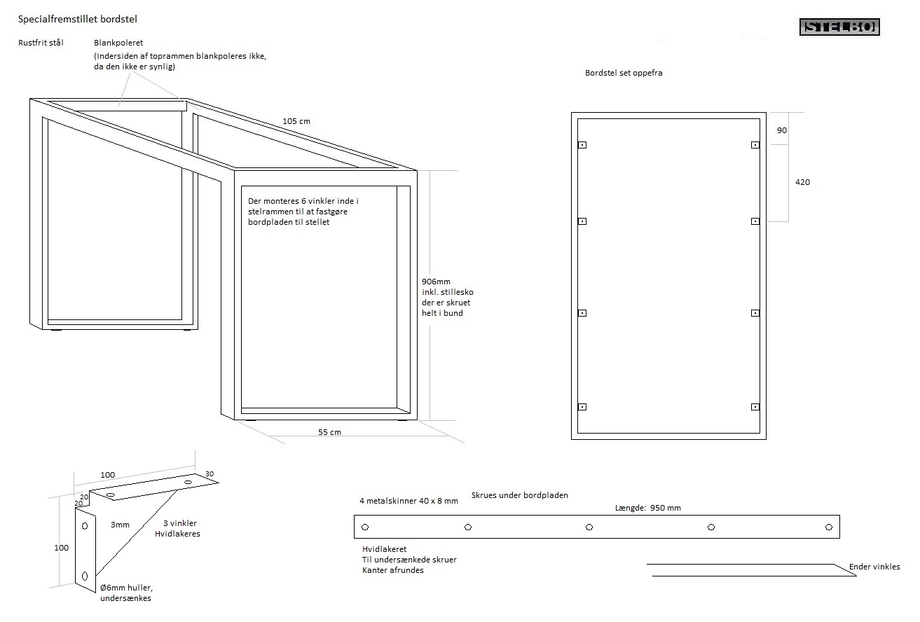 20191017 Specialfremstillet bordstel i rustfrit stål.