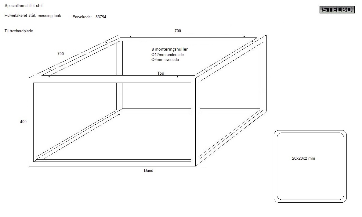 20191021 Specialfremstillet bordstel. Pulverlakeret messing look. 700x700x400-20x20