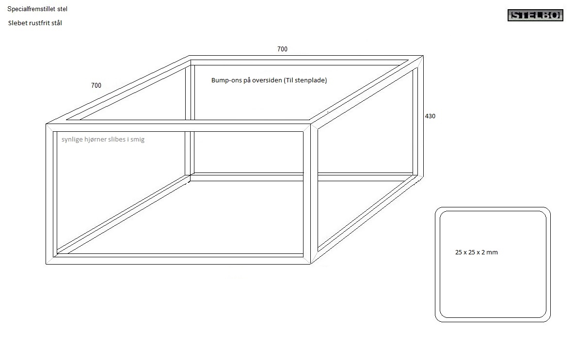 20191021 Specialfremstillet bordstel i rustfrit stål.