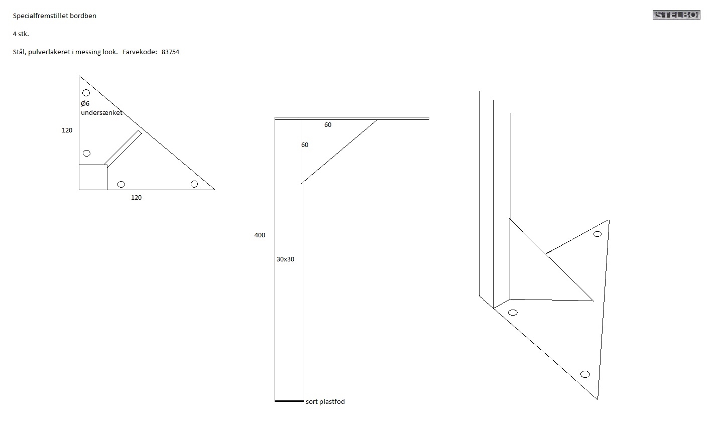 20191025 Specialfremstillet bordben, 4 stk. Pulverlakeret messing look.