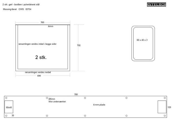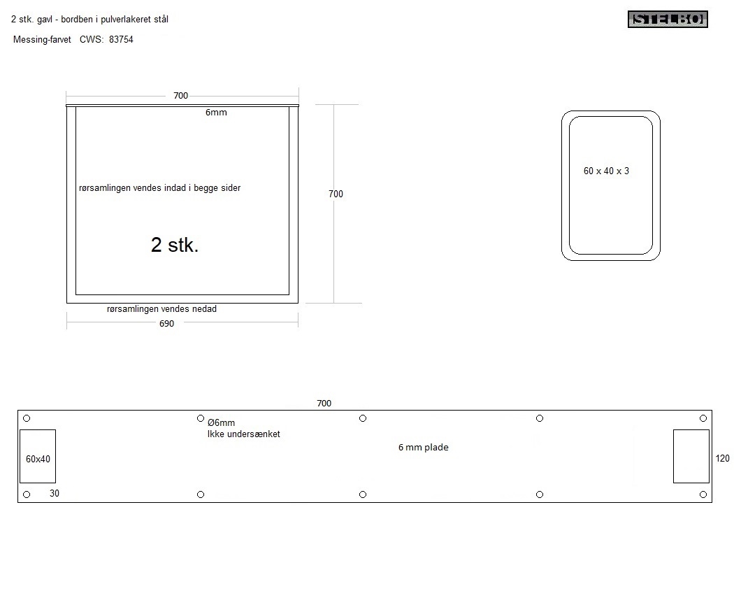20191118 Specialfremstillet bordben/rammer. Pulverlakeret messing look, 2 stk.