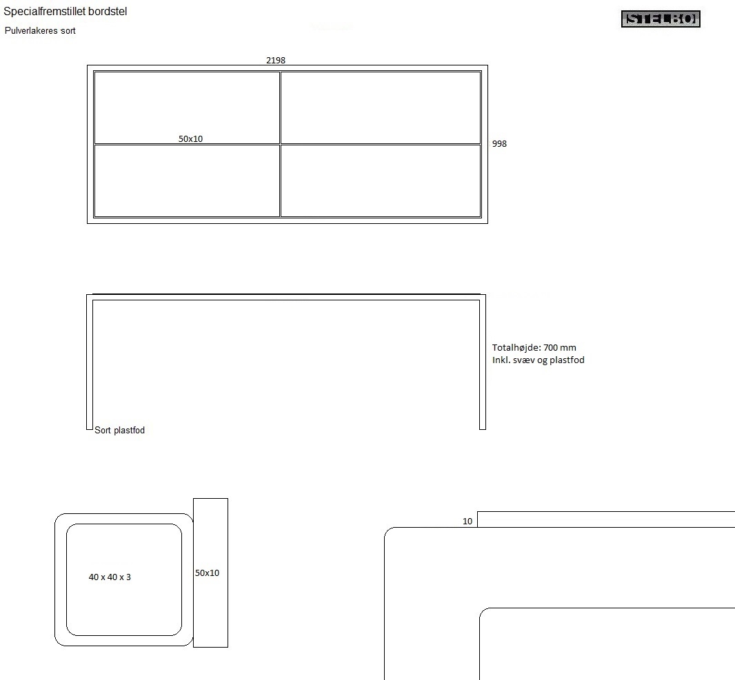 20191125 Specialfremstillet bordstel. Pulverlakeret stål.