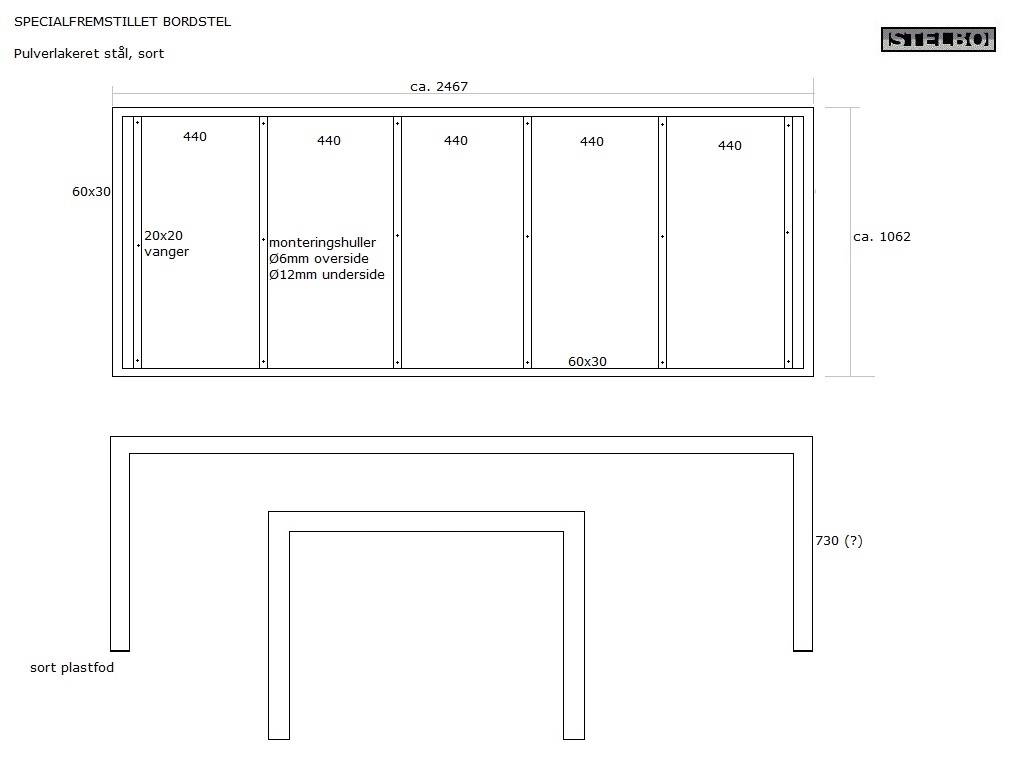 20200210 Specialfremstillet bordstel. Sort pulverlakeret stål.