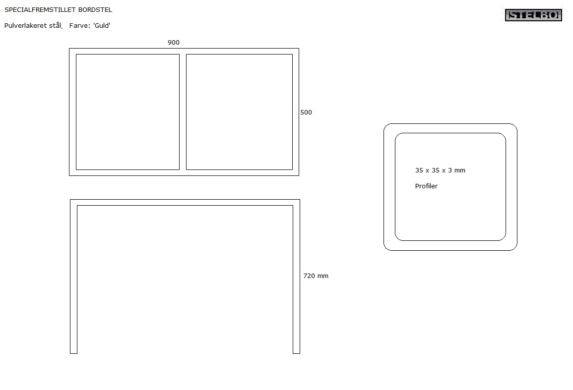 20200225 Specialfremstillet bordstel. Pulverlakeret stål i guldfarve