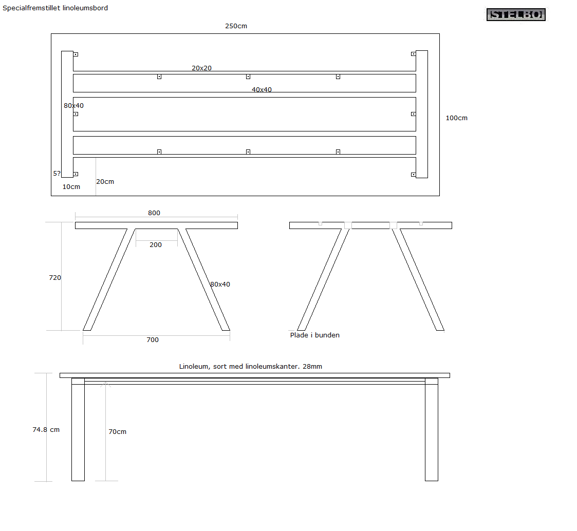 20200518 Specialfremstillet Linoleumsbord 250x100cm