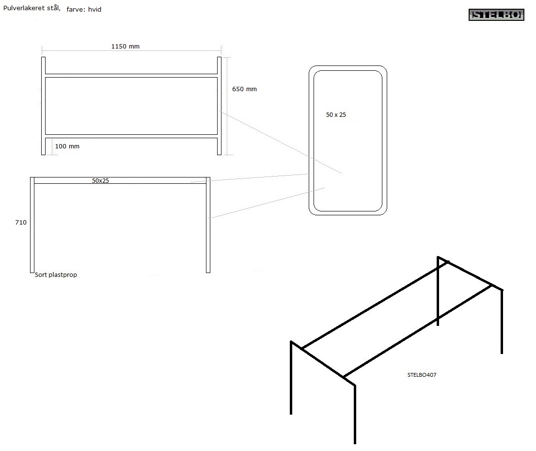 20200601 Specialfremstillet bordstel, STELBO407, Hvid