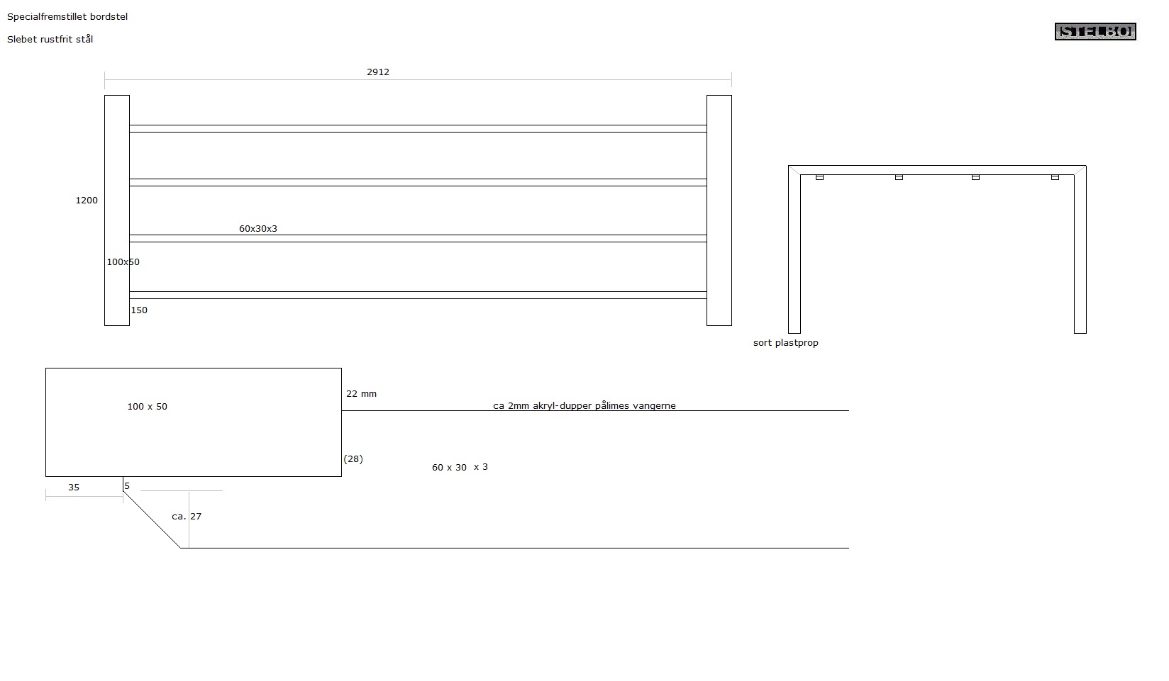 Bordplade med 4 slebne kanter/affaset 2710 x 1200mm