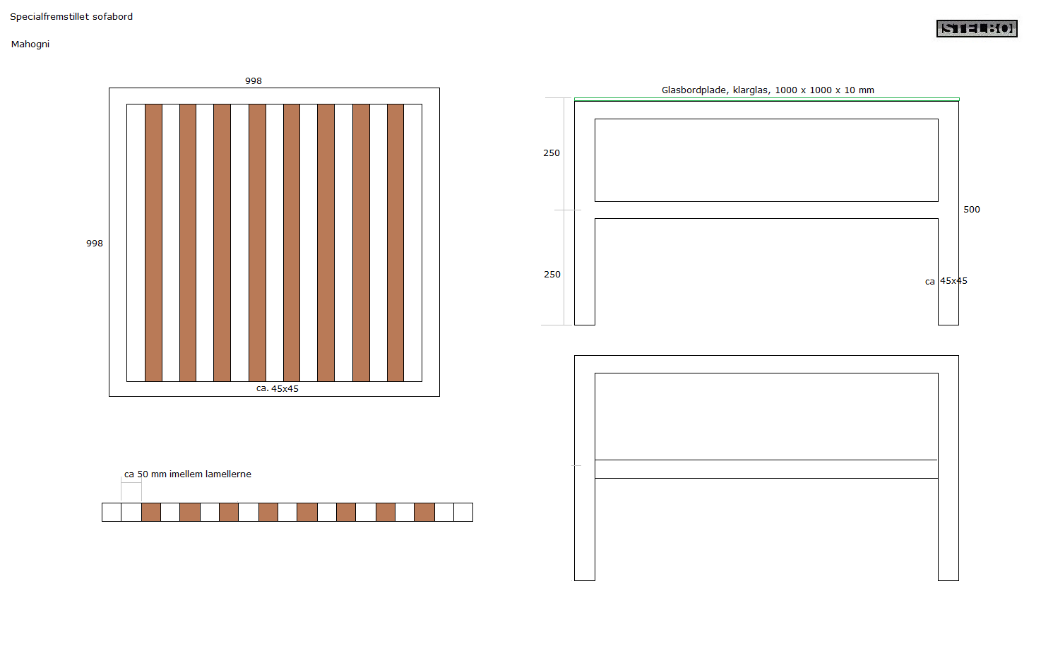 Større bordstel 998x998mm: + 350,-
