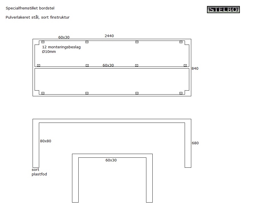 20210215 Specialfremstillet bordstel. Sortlakeret stål, finstruktur