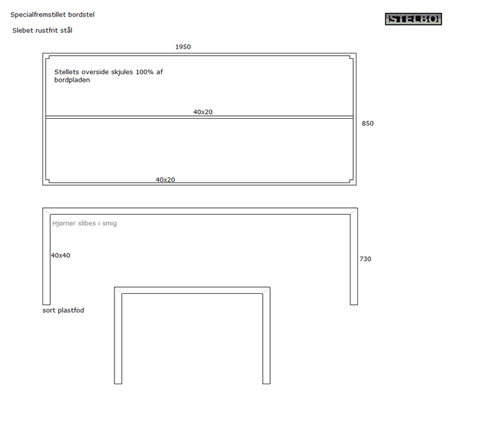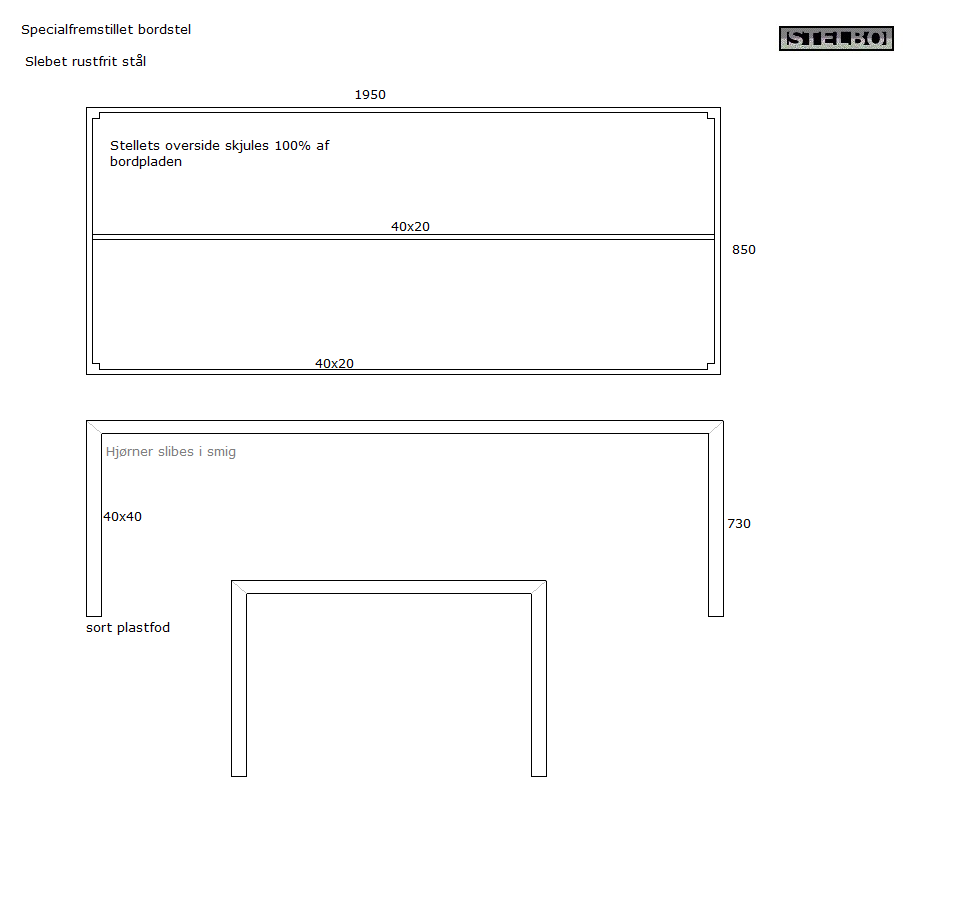 20210215 Specialfremstillet bordstel. Slebet rustfrit stål