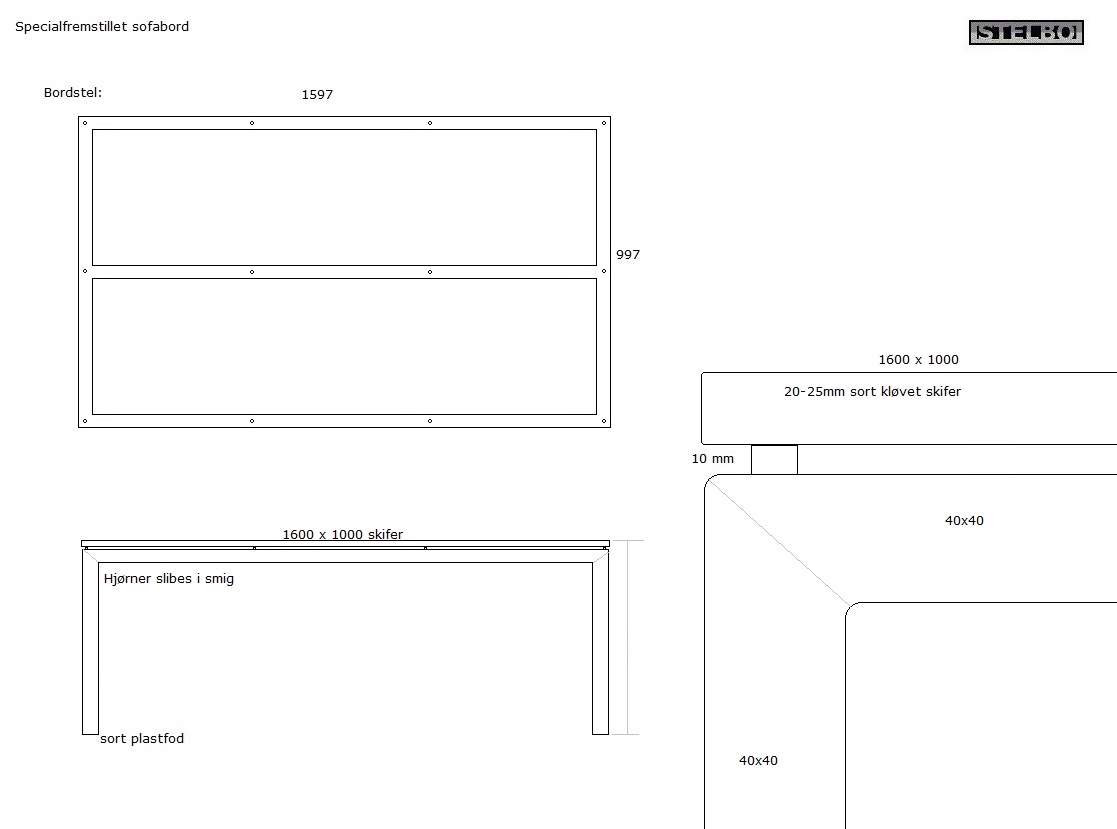 20210305 Specialfremstillet sofabord. Rustfrit stål med sort skifer. 160x100