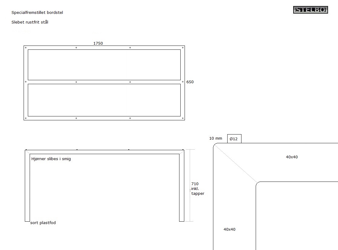 20210320 Specialfremstillet bordstel. Slebet rustfrit stål